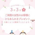2026年3月3日(火) ご来館の女性のお客様にひなあられをプレゼント! 50年以上前の優しいお…